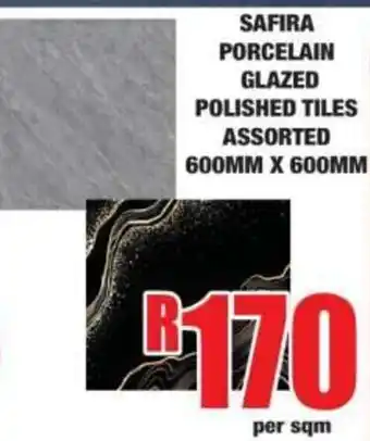 This special is available in various stores, view all products to get the cheapest Safira porcelain glazed polished tiles assorted. If you'd like to find out whether this product has a bigger discount in another store, check the category 'Grocery stores'. You may also find these specials interesting: Safira porcelain glazed polished tiles assorted, Polished Porcelain Tiles & Polished Porcelain Tiles.