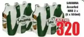 This special is available in various stores, view all products to get the cheapest SAVANNA Assorted NRB. If you'd like to find out whether this product has a bigger discount in another store, check the category 'Grocery stores'. You may also find these specials interesting: Savanna assorted nrb, Savanna Dry Cider NRB & Savanna Premium Dry/ Light Cider NRB.