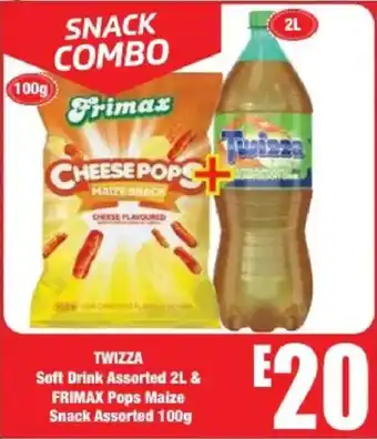 TWIZZA Soft Drink Assorted 2L & FRIMAX Pops Maize Snack Assorted 100g