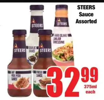This special is available in various stores, view all products to get the cheapest Steers Sauce Assorted. If you'd like to find out whether this product has a bigger discount in another store, check the category 'Grocery stores'. You may also find these specials interesting: STEERS Sauce Assorted, STEERS Sauces Assorted & Steers Sauce/ Salad Dressing.
