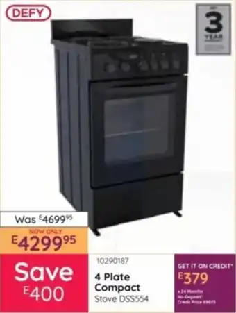 Defy 4 Plate Compact Stove offers and online specials, directly from Bradlows