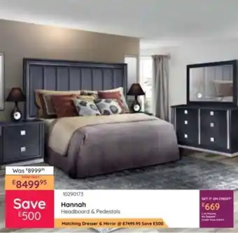 This special is available in various stores, view all products to get the cheapest Hannah Headboard & Pedestals. If you'd like to find out whether this product has a bigger discount in another store, check the category 'Home furniture'. You may also find these specials interesting: Hannah Headboard & Pedestals 10290173, Chloe headboard with pedestals & Julia Headboard & Pedestals.