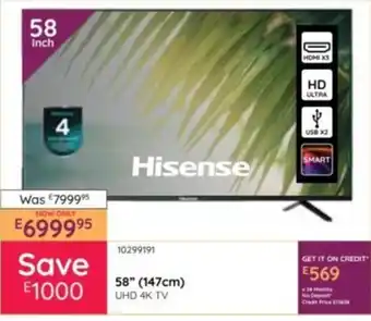 Hisense 58" 147cm UHD 4K TV Offer at Bradlows