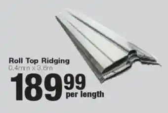 This special is available in various stores, view all products to get the cheapest Roll Top Ridging. If you'd like to find out whether this product has a bigger discount in another store, check the category 'DIY & Garden'. You may also find these specials interesting: Galvanised roll/ ibr top ridging, Galvanised roll/ ibr top ridging & Mitchum Roll-On.