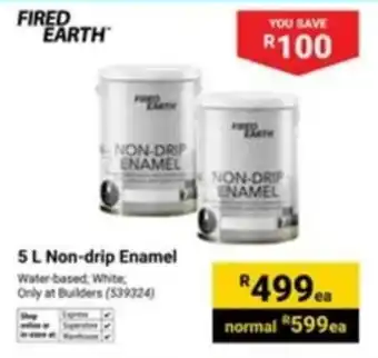 Builders Express offers a wide collection of products, besides the Fired Earth Non-drip Enamel. Keep an eye on the weekly Builders Express catalogue to find the best specials and promotions. Besides Fired Earth Non-drip Enamel, you can also find the following offers: Fired Earth 5L Non Drip Water Based Enamel (539324), Plascon 5L Velvaglo Non Drip Water Based Enamel (538432) & Fired Earth 20L Whispers (397167).