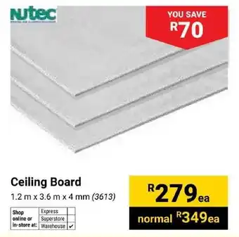 Now on special at Builders Trade Depot: Nutec Ceiling Board ✅ Valid from 1-01 to 30-06.