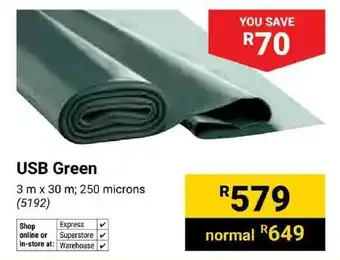 This special is available in various stores, view all products to get the cheapest USB Green. If you'd like to find out whether this product has a bigger discount in another store, check the category 'DIY & Garden'. You may also find these specials interesting: USB Green, USB Green & USB Green Sheeting 5192.