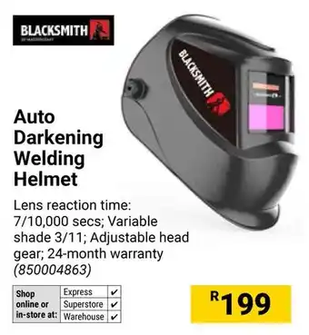 Now on special at Builders Warehouse: Blacksmith Auto Darkening Welding Helmet ✅ Valid from 14-10 to 13-01.