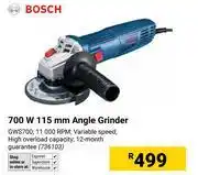 Bosch 700W 115mm Angle Grinder GWS700 (736103) offers and online specials, directly from Builders Warehouse