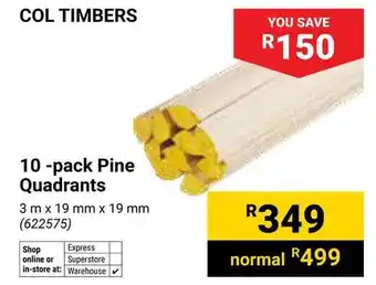 Col Timbers Pine Quadrants offers and online specials, directly from Builders Warehouse