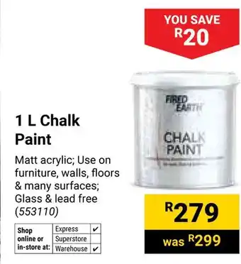 Now on special at Builders Warehouse: Fired Earth Chalk Paint ✅ Valid from 28-10 to 31-12.