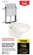 Lusso Luna Ceramic Toilet Concealed Cistern & White Flush Plate (783907,783910) offers and online specials, directly from Builders Warehouse
