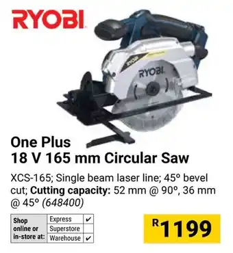 RYOBI One Plus 18 V 165 mm Circular Saw offers and online specials, directly from Builders Warehouse