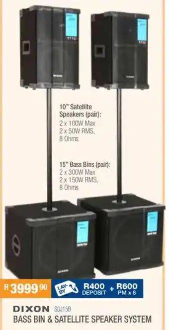 This special is available in various stores, view all products to get the cheapest Dixon bass bin & satellite speaker system. If you'd like to find out whether this product has a bigger discount in another store, check the category 'Electronics'. You may also find these specials interesting: Dixon bluetooth speaker, Dxn pro dual 18" dj/pa bass bin & PRO BASS Portable Bluetooth Speaker.
