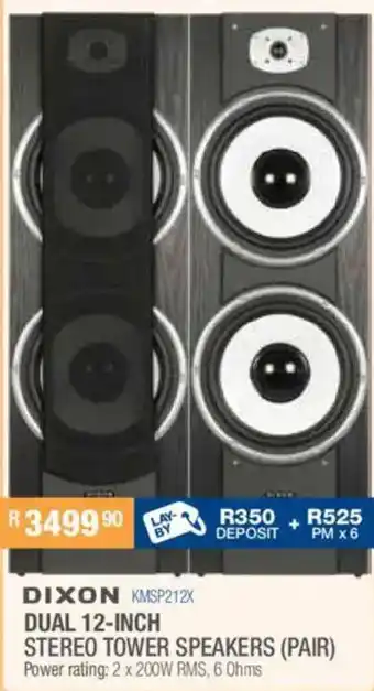 This Dixon dual 12-inch stereo tower speakers is available in the following branches based on your set location: