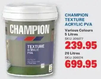 Champion texture acrylic pva offers and online specials, directly from Cashbuild