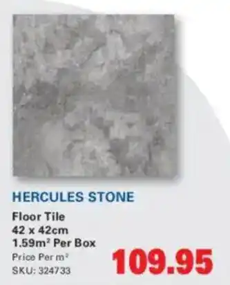 The price of Hercules stone floor tile can be found at the top of the page, together with the dates during which the special is available. You can also check the price in the current Cashbuild catalogue or on the Cashbuild website. Promotional offers assure you of buying Cashbuild products at the lowest price.