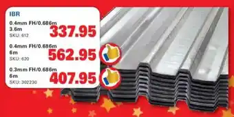 This special is available in various stores, view all products to get the cheapest IBR. If you'd like to find out whether this product has a bigger discount in another store, check the category 'DIY & Garden'. You may also find these specials interesting: IBR Sheet 0.35mm-Per M, Alu zinc ibr roof sheeting & Galvanised roll/ ibr top ridging.