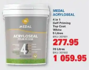 This special is available in various stores, view all products to get the cheapest Medal acryloseal. If you'd like to find out whether this product has a bigger discount in another store, check the category 'DIY & Garden'. You may also find these specials interesting: Medal universal tinter, Medal qd industrial enamel & Medal professional trade plaster primer.