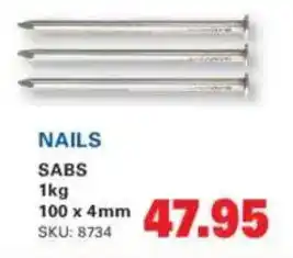 The price of Nails can be found at the top of the page, together with the dates during which the special is available. You can also check the price in the current Cashbuild catalogue or on the Cashbuild website. Promotional offers assure you of buying Cashbuild products at the lowest price.