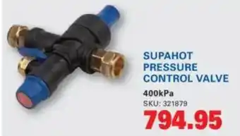 This special is available in various stores, view all products to get the cheapest Supahot pressure control valve. If you'd like to find out whether this product has a bigger discount in another store, check the category 'DIY & Garden'. You may also find these specials interesting: Pressure Valve 400kpa Refurb, Av Pressure Valve 400KPA Hypaflo & Supahot geyser "B".