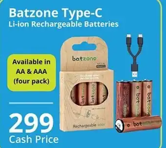 Batzone Type-C Li-ion Rechargeable Batteries promotion at Cellucity