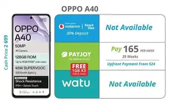 This discount promotion for Oppo A40 runs from 07-01-2026 to 05-02-2026. Has it ended? No problem — other Oppo A40 deals are always available. Follow the product category to stay informed when Oppo A40 is back on special. By comparing Oppo A40 prices and offers, you’ll always buy at the right moment.