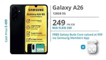 This special is available in various stores, view all products to get the cheapest SAMSUNG Galaxy A26 128GB 5G. If you'd like to find out whether this product has a bigger discount in another store, check the category 'Electronics'. You may also find these specials interesting: Samsung Galaxy A36 5G, Samsung Galaxy A36 5G & Samsung Galaxy A06.