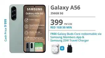 This discount promotion for SAMSUNG Galaxy A56 256GB 5G runs from 07-01-2026 to 05-02-2026. Has it ended? No problem — other SAMSUNG Galaxy A56 256GB 5G deals are always available. Follow the product category to stay informed when SAMSUNG Galaxy A56 256GB 5G is back on special. By comparing SAMSUNG Galaxy A56 256GB 5G prices and offers, you’ll always buy at the right moment.