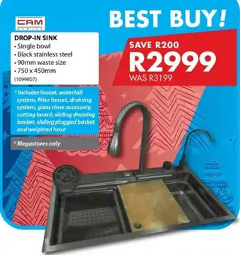 This special is available in various stores, view all products to get the cheapest Cam drop-in sink. If you'd like to find out whether this product has a bigger discount in another store, check the category 'DIY & Garden'. You may also find these specials interesting: Cam drop-in sink, Cam drop-in sink & Sink Drop-In 1200 x 500 Including Waste 42654/45680.