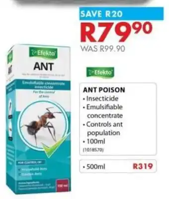 This special is available in various stores, view all products to get the cheapest Efekto Ant Poison. If you'd like to find out whether this product has a bigger discount in another store, check the category 'DIY & Garden'. You may also find these specials interesting: Efekto No Ant, Efekto Kamikaze & Efekto Everdeath.