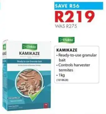 This special is available in various stores, view all products to get the cheapest Efekto Kamikaze. If you'd like to find out whether this product has a bigger discount in another store, check the category 'DIY & Garden'. You may also find these specials interesting: Efekto No Ant, Efekto Everdeath & Efekto Fendona.