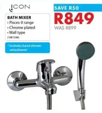 This special is available in various stores, view all products to get the cheapest Icon bath mixer. If you'd like to find out whether this product has a bigger discount in another store, check the category 'DIY & Garden'. You may also find these specials interesting: Icon sink mixer, Icon sink mixer & Icon basin mixer.
