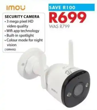 This Imou security camera is currently available as part of a special promotion at Chamberlain. Be sure to check the current promotions filled with competitive prices and deals. You can order Imou security camera online via Chamberlain website or get it at the best available price. Cataloguespecials.co.za collects the most relevant Imou security camera offers and specials for you. Want to be notified first? Click the bell icon to receive a free alert when the product is part of a new promotion or available again.