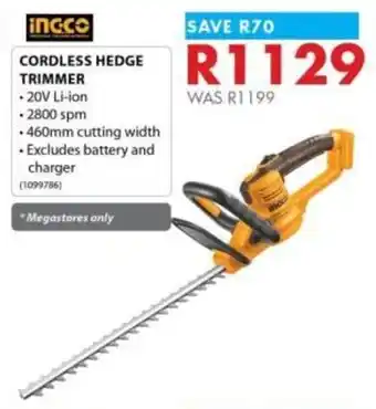 Ingco cordless hedge trimmer promotion at Chamberlain