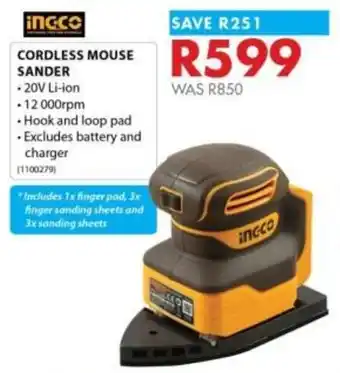 Ingco cordless mouse sander offers and online specials, directly from Chamberlain