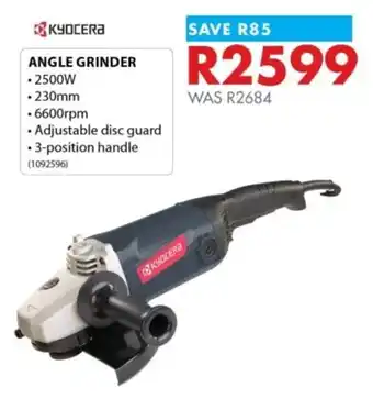 This Kyocera Angle Grinder is currently available as part of a special promotion at Chamberlain. Be sure to check the current promotions filled with competitive prices and deals. You can order Kyocera Angle Grinder online via Chamberlain website or get it at the best available price. Cataloguespecials.co.za collects the most relevant Kyocera Angle Grinder offers and specials for you. Want to be notified first? Click the bell icon to receive a free alert when the product is part of a new promotion or available again.