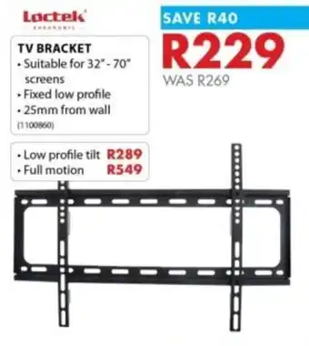 This special is available in various stores, view all products to get the cheapest Loctek tv bracket. If you'd like to find out whether this product has a bigger discount in another store, check the category 'DIY & Garden'. You may also find these specials interesting: ULTRA-Link 37"-80" TV Bracket, ULTRA-Link 21"-60" Tilt TV Bracket & Ultra-Link 23-55” Full Motion TV Bracket.