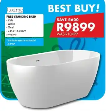 The Luximo free-standing bath is now available with a discount at Chamberlain. On this page, you’ll find everything about the current price, promotion conditions, and how long the offer is valid. Also explore other offers and promotions for Luximo free-standing bath to make a smart and cost-effective choice.