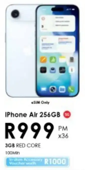 This special is available in various stores, view all products to get the cheapest iPhone Air 256GB. If you'd like to find out whether this product has a bigger discount in another store, check the category 'Electronics'. You may also find these specials interesting: iPhone Air 256GB 5G, iPhone Air 256GB 5G & iPhone Air (256GB).