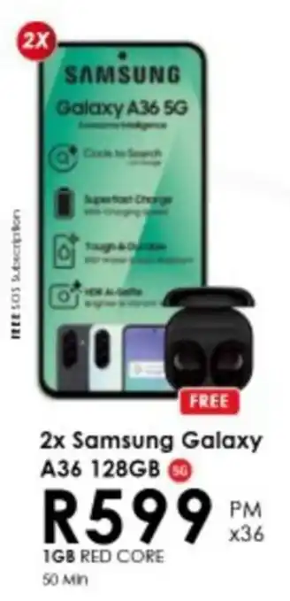 This special is available in various stores, view all products to get the cheapest Samsung Galaxy A36 128GB. If you'd like to find out whether this product has a bigger discount in another store, check the category 'Electronics'. You may also find these specials interesting: Samsung Galaxy A07, Samsung Galaxy A36 5G & Samsung Galaxy A26 5G.