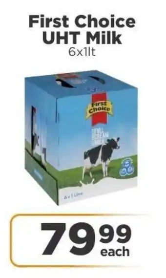 This special is available in various stores, view all products to get the cheapest First Choice UHT Milk. If you'd like to find out whether this product has a bigger discount in another store, check the category 'Grocery stores'. You may also find these specials interesting: First Choice UHT Milk, First Choice UHT Long Life Full Cream, Low Fat or Skim Milk & First Choice Fresh Milk.