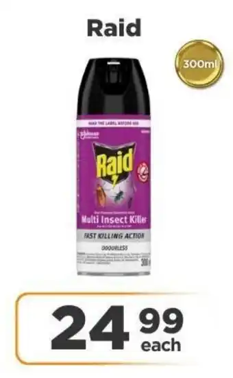 This Raid is currently available as part of a special promotion at Check Star. Be sure to check the current promotions filled with competitive prices and deals. You can order Raid online via Check Star website or get it at the best available price. Cataloguespecials.co.za collects the most relevant Raid offers and specials for you. Want to be notified first? Click the bell icon to receive a free alert when the product is part of a new promotion or available again.