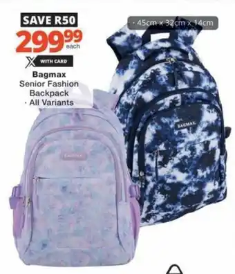 Bagmax Senior Fashion Backpack offers and online specials, directly from Checkers Hyper