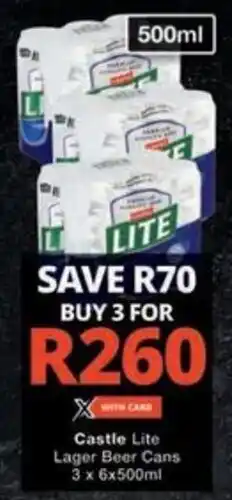 Castle Lite Lager Beer Cans promotion at Checkers Hyper