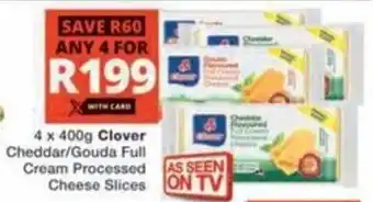 Clover Cheddar/ Gouda Full Cream Processed Cheese Slices offers and online specials, directly from Checkers Hyper