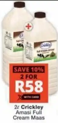 Crickley Amasi Full Cream Maas promotion at Checkers Hyper
