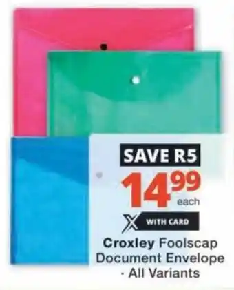 Croxley Foolscap Document Envelope promotion at Checkers Hyper