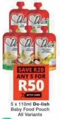 Now on special at Checkers Hyper: De-lish Baby Food Pouch All Variants ✅ Valid from 19-01 to 8-02.