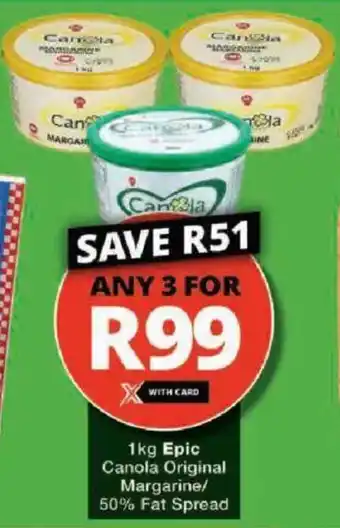 Epic Canola Original Margarine/ 50% Fat Spread Offer at Checkers Hyper